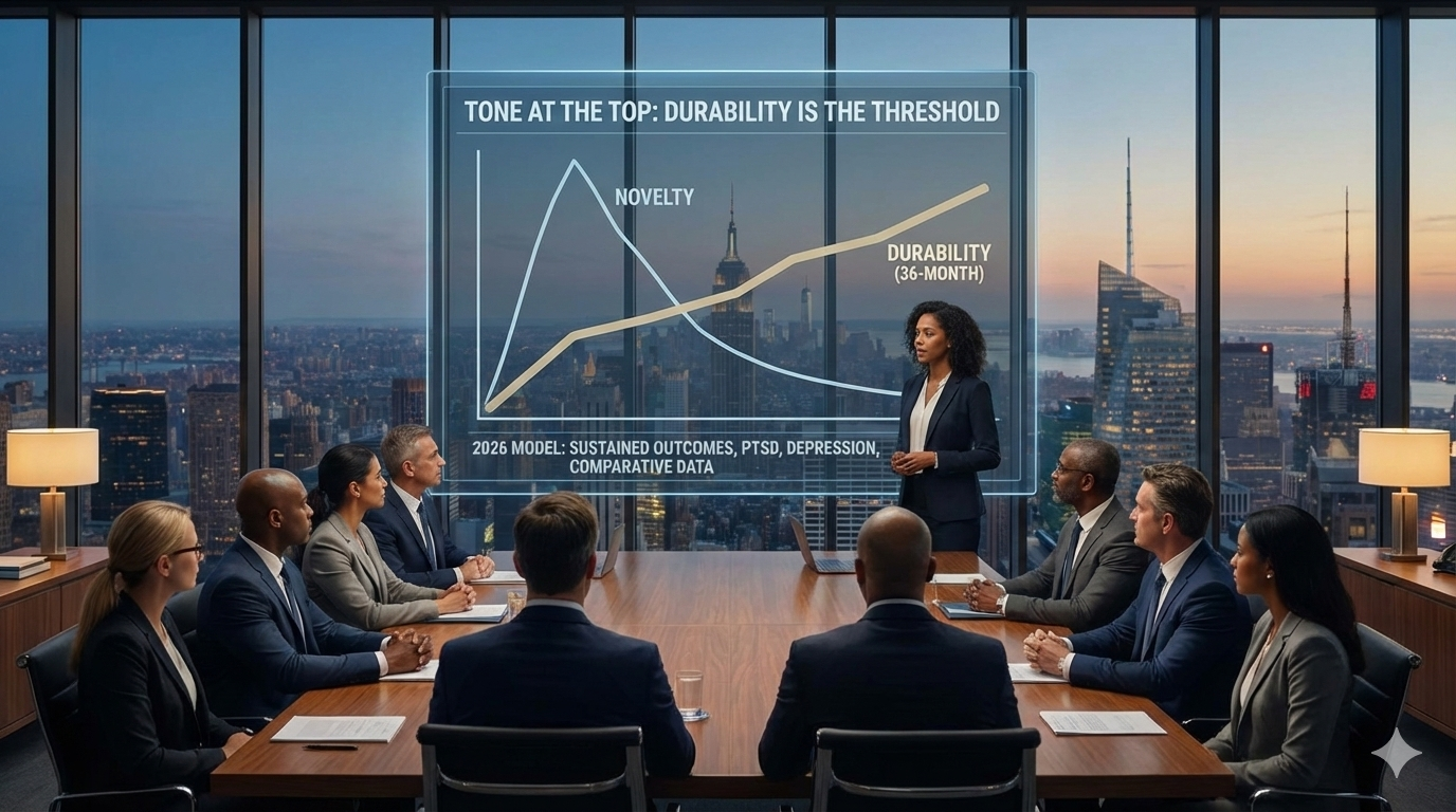 Any new intervention must demonstrate not only efficacy, but comparative durability against established approaches—including ketamine-based protocols and SSRIs—across equivalent time horizons.