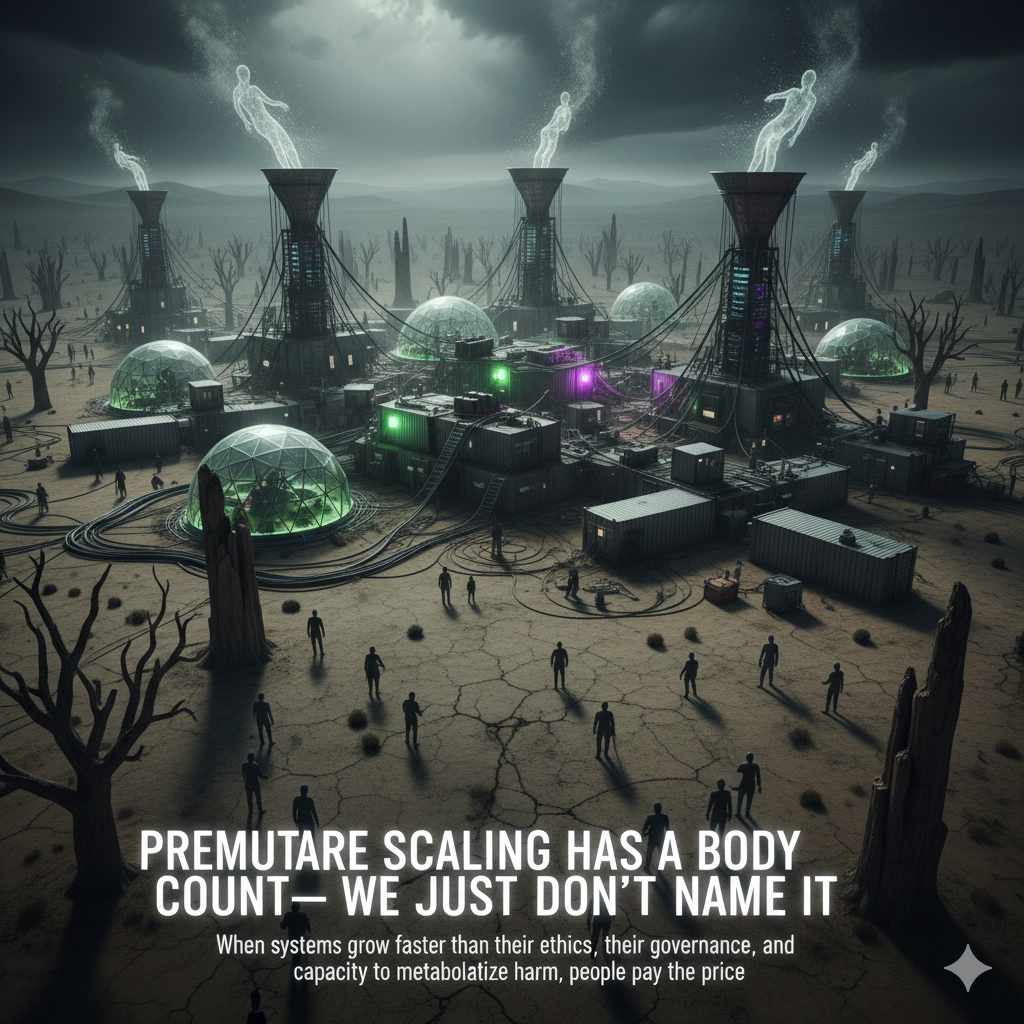 When systems grow faster than their ethics, their governance, and their capacity to metabolize harm, people pay the price. We just rarely count them.