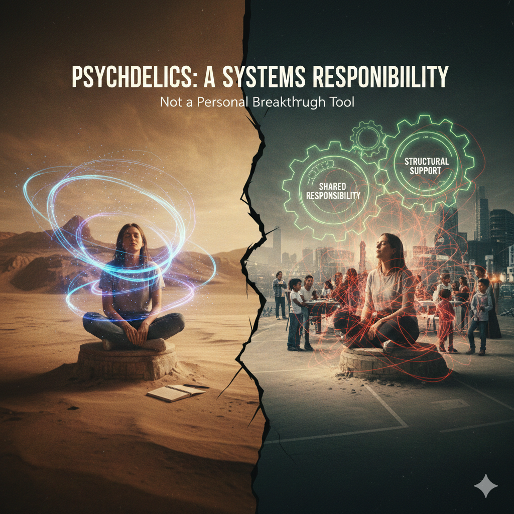 Clinics, training programs, retreat centers, and regulatory bodies all participate in shaping downstream outcomes. When they design care models that stop at the moment of insight, they externalize risk onto the participant’s life.
